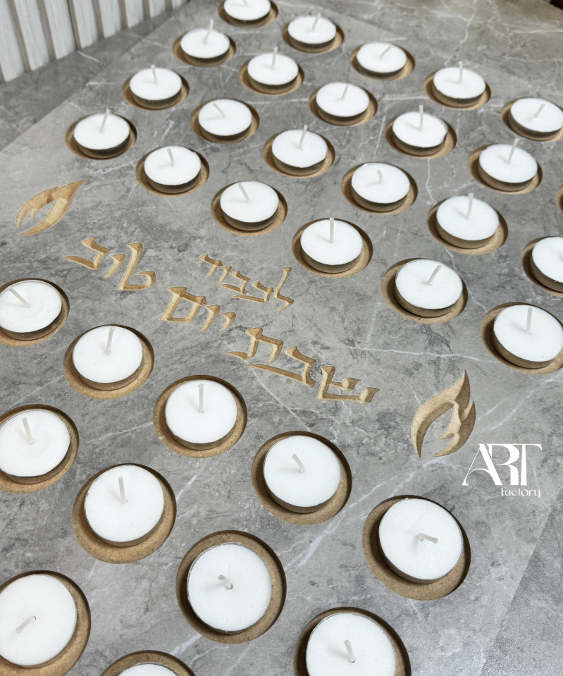 | בחרי גודל מגש : | מגש נרות שבת עם 15 נרות, מגש נרות שבת עם 28 נרות |