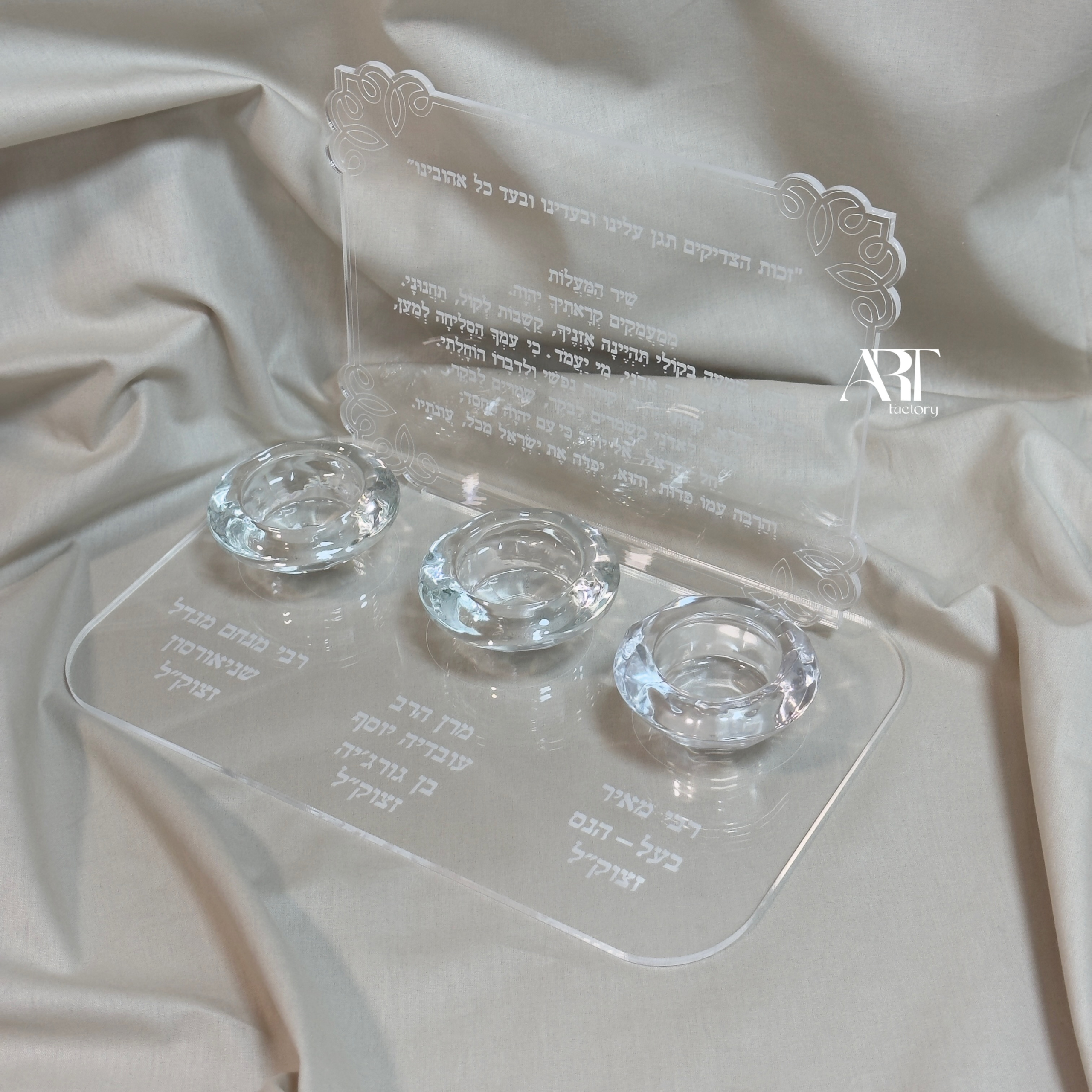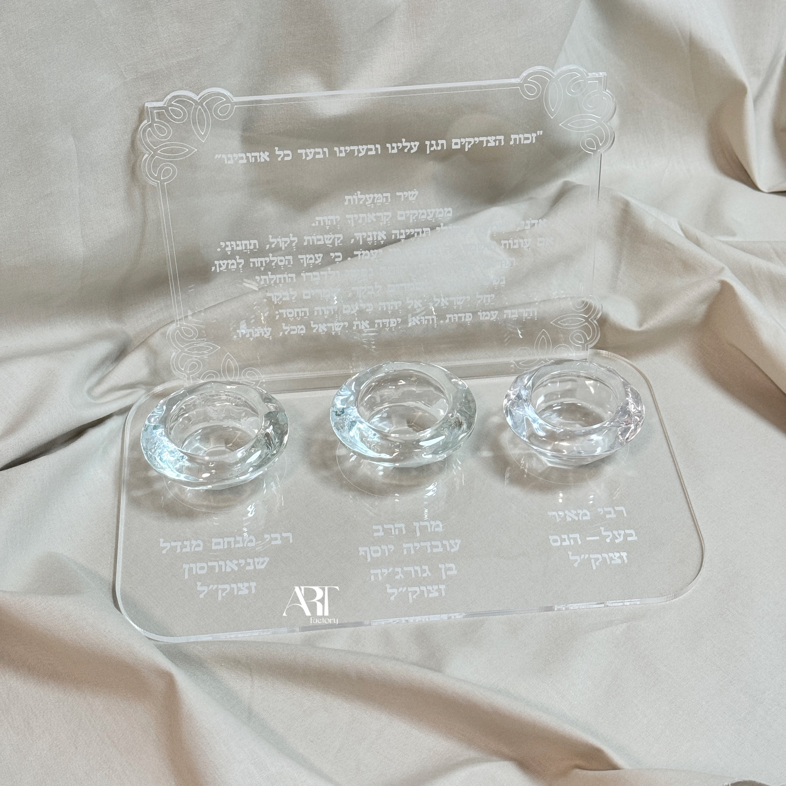 עם 3 נרות וחריטה של הצדיקי הגדולים