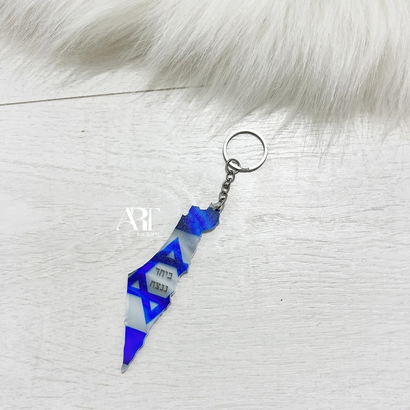 מחזיק מפתחות בהדפס דגל ישראל ובצורת
