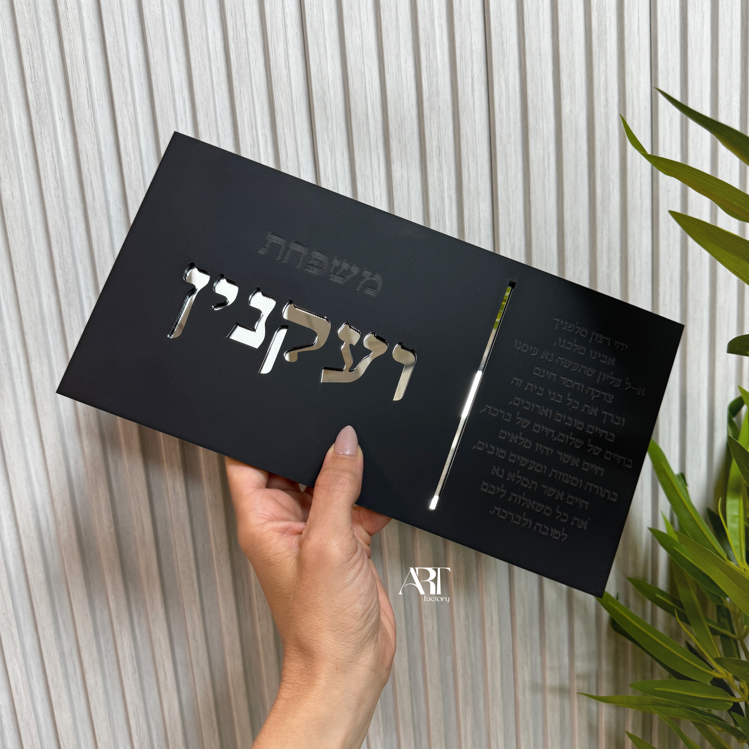 משלב ברכת הבית בחריטה עם שם משפחה בחיתוך מדויק